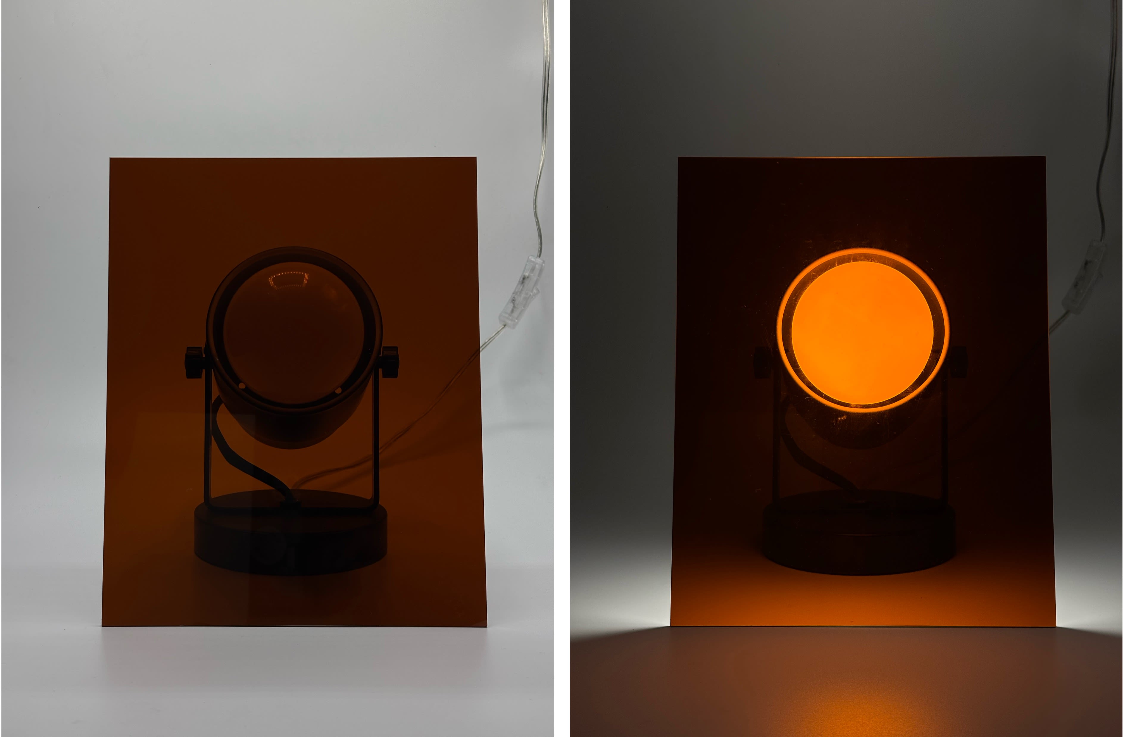 Another way to demonstrate the relationship between brown and orange is to take a light filter that is described as brown and shine light through it. . .