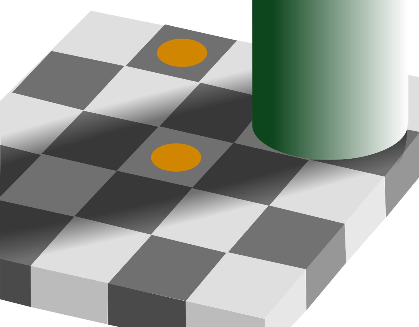 However, we tend to interpret the one near the bottom as brighter (more orange) than the one near the top.