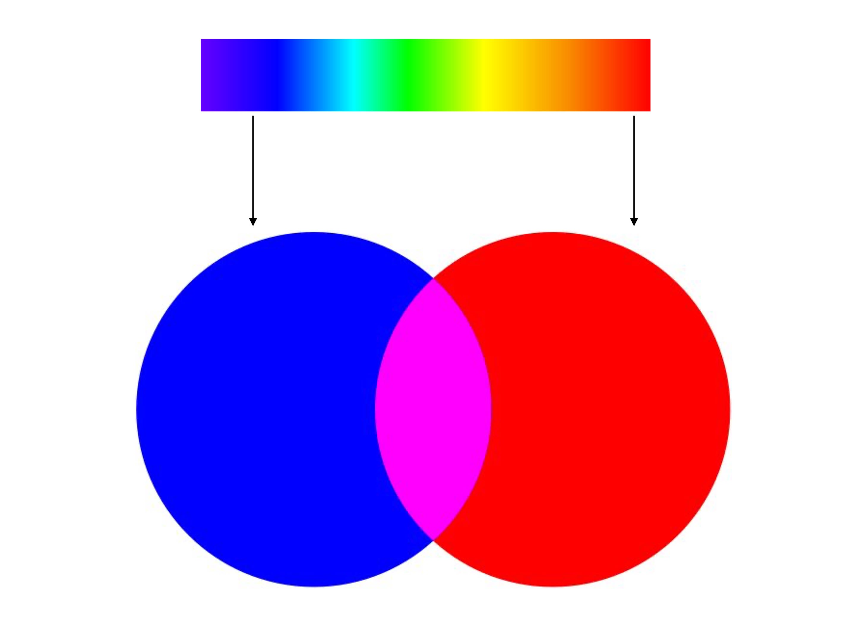 For example, magenta is nonspectral: we can perceive it when short wavelength and long wavelength light appear simultaneously. There is no single wavelength associated with magenta.